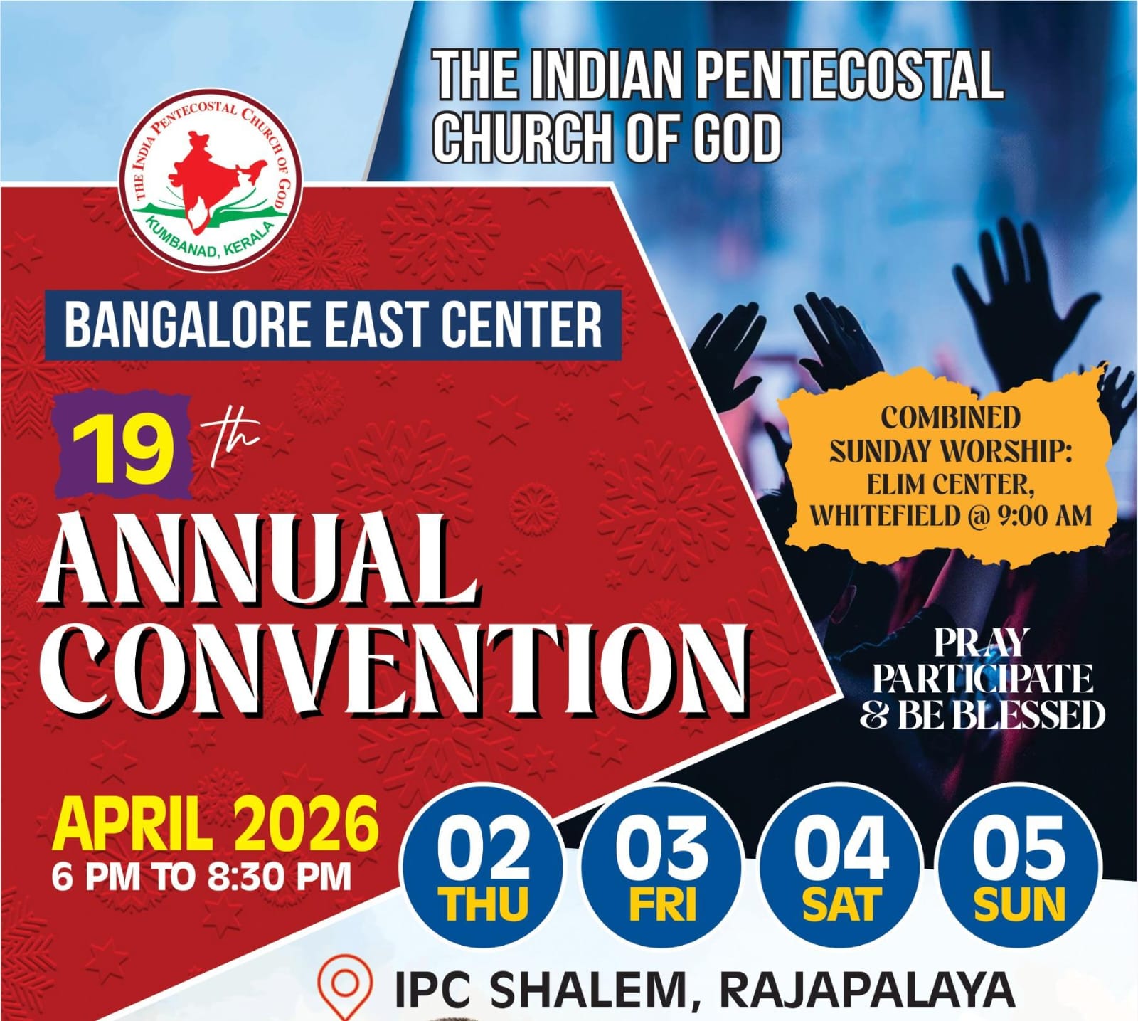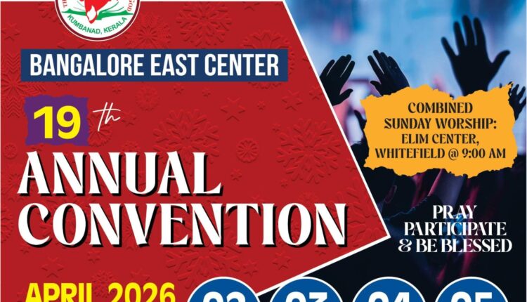 ഐപിസി ബാംഗ്ലൂർ ഈസ്റ്റ് സെന്റർ വാർഷിക കൺവെൻഷൻ ഏപ്രിൽ 2 മുതൽ