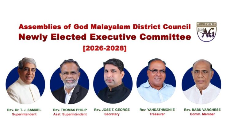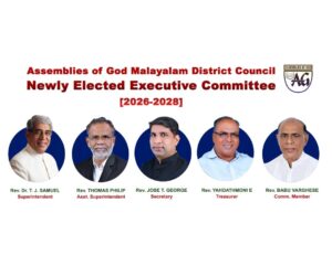 അസംബ്ലിസ് ഓഫ് ഗോഡ് മലയാളം ഡിസ്ട്രിക്ട് കൗൺസിൽ പുതിയ എക്സിക്യൂട്ടീവ് കമ്മിറ്റി തിരഞ്ഞെടുക്കപ്പെട്ടു