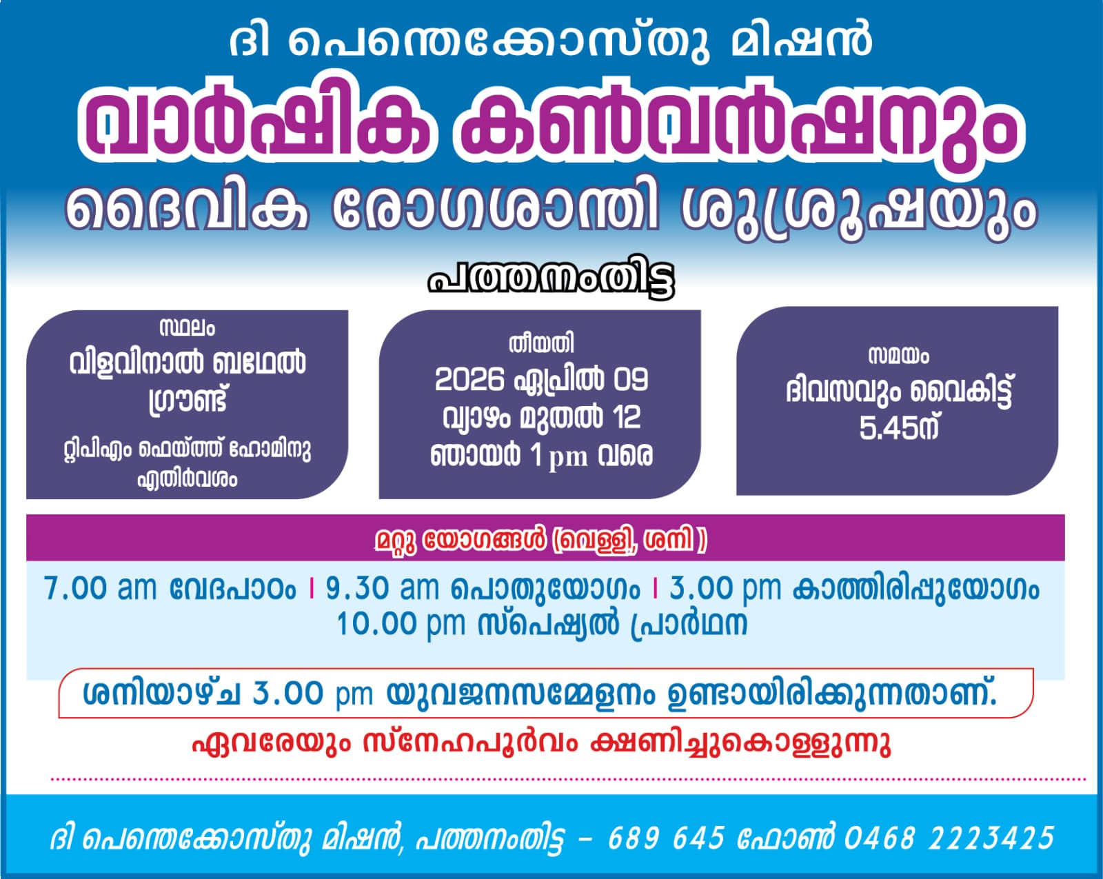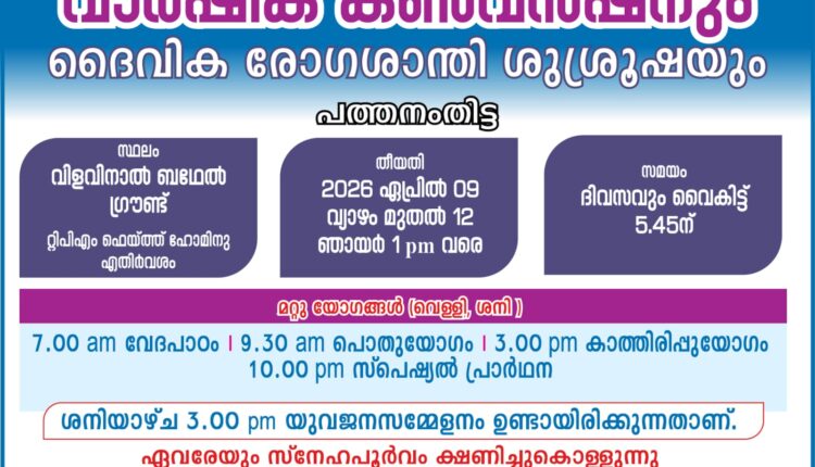 പെന്തെക്കൊസ്ത് മിഷൻ പത്തനംതിട്ട കൺവെൻഷൻ ഏപ്രിൽ 9 മുതൽ