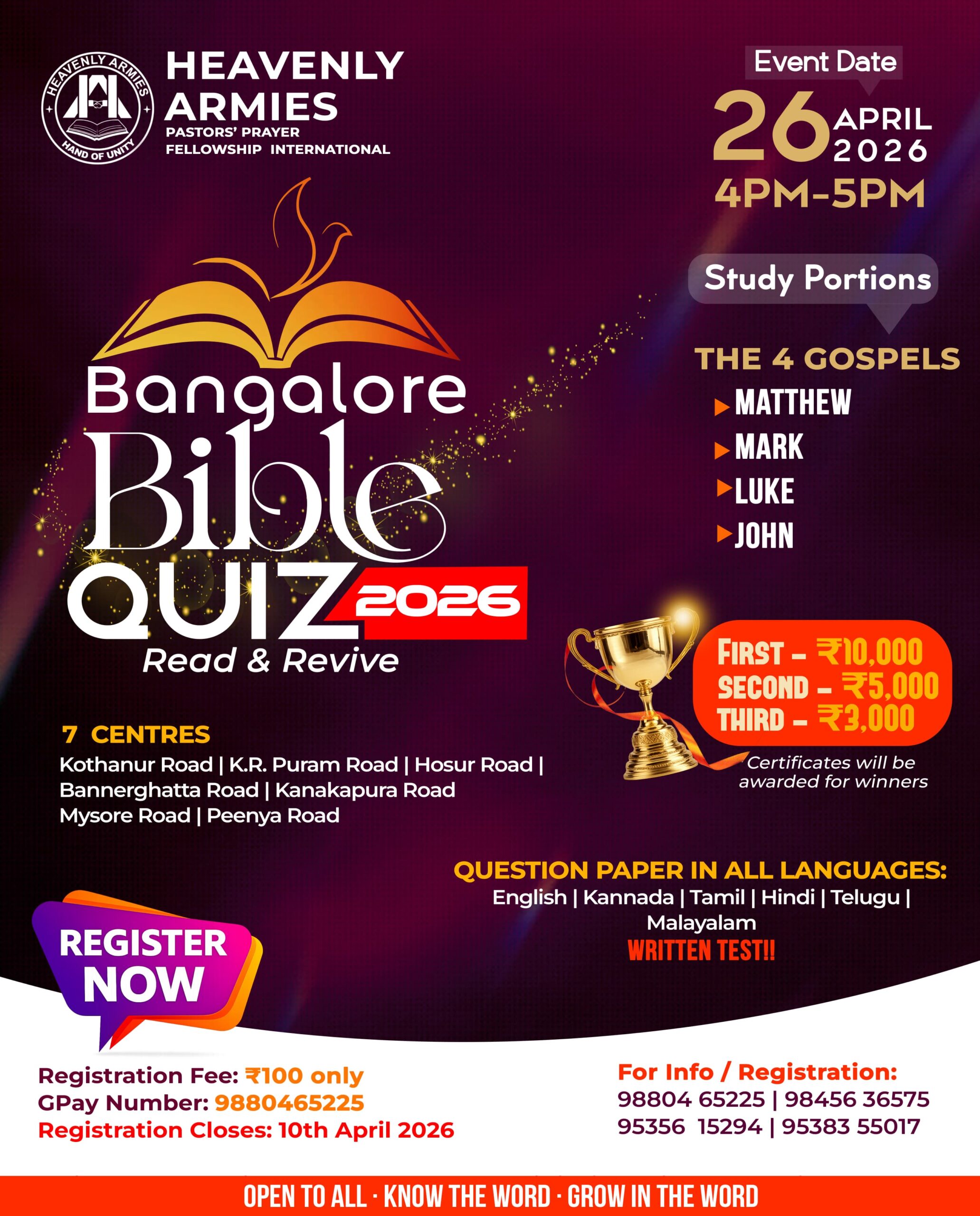 ഹെവൻലീ ആർമീസ് ബൈബിൾ ക്വിസ് ഏപ്രിൽ 26ന്