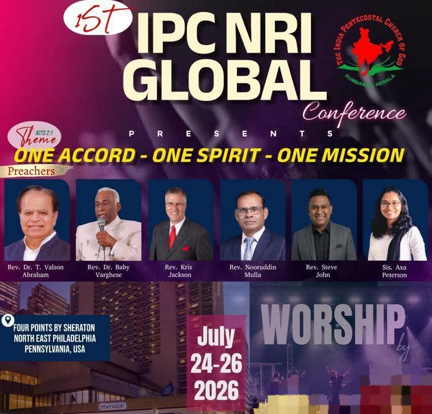 ഫിലഡെൽഫിയ: അമേരിക്കയിലെ പെൻസിൽവാനിയ സംസ്ഥാനത്തെ ഫിലഡെൽഫിയയിൽ സ്ഥിതിചെയ്യുന്ന ഫോർ പോയിന്റ്സ് ബൈ ഷെറട്ടൺ നോർത്ത് ഈസ്റ്റ് ഫിലഡെൽഫിയ ഹോട്ടലിൽ 2026 ജൂലൈ 24 മുതൽ 26 വരെ ഐപിസി എൻആർഐ ഗ്ലോബൽ കോൺഫറൻസ് സംഘടിപ്പിക്കുന്നു.