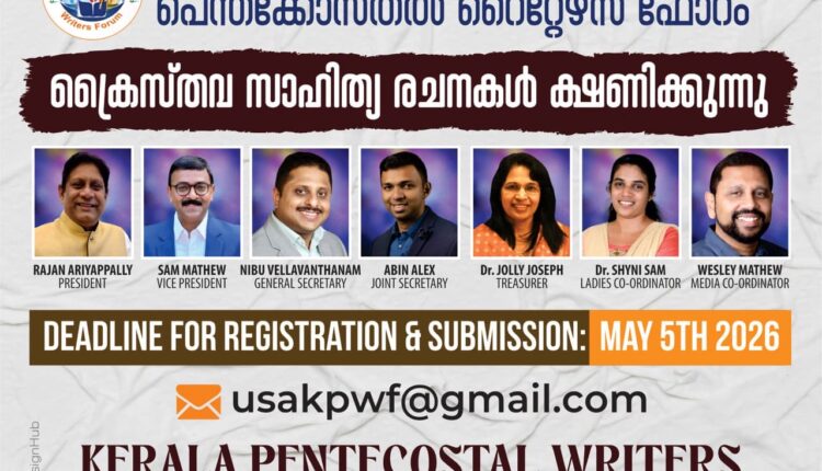 നോർത്ത് അമേരിക്കൻ പെന്തക്കോസ്തൽ റൈറ്റേഴ്സ് ഫോറം: ക്രൈസ്തവ സാഹിത്യ രചനകൾ ക്ഷണിക്കുന്നു