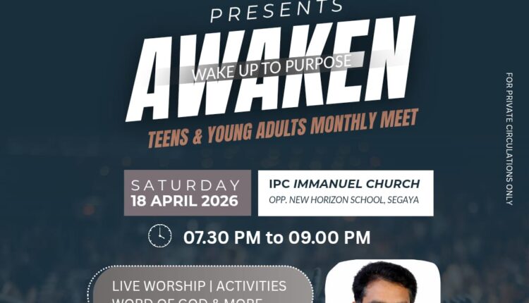 മനാമ: ഐസിപിഎഫ് ബഹ്റൈൻ (Inter Collegiate Prayer Fellowship)യുടെ ആഭിമുഖ്യത്തിൽ യുവജനങ്ങൾക്കായി “AWAKEN – Wake Up to Purpose” ആത്മീയ സംഗമം ഏപ്രിൽ 18 ശനിയാഴ്ച സംഘടിപ്പിക്കുന്നു. സെഗായയിലെ ന്യൂ ഹൊറൈസൺ സ്കൂളിന് സമീപമുള്ള ഐപിസി ഇമ്മാനുവൽ ചർച്ചിലാണ് പരിപാടി നടക്കുന്നത്. വൈകുന്നേരം 7.30 മുതൽ 9.00 വരെ യോഗം തുടരും.