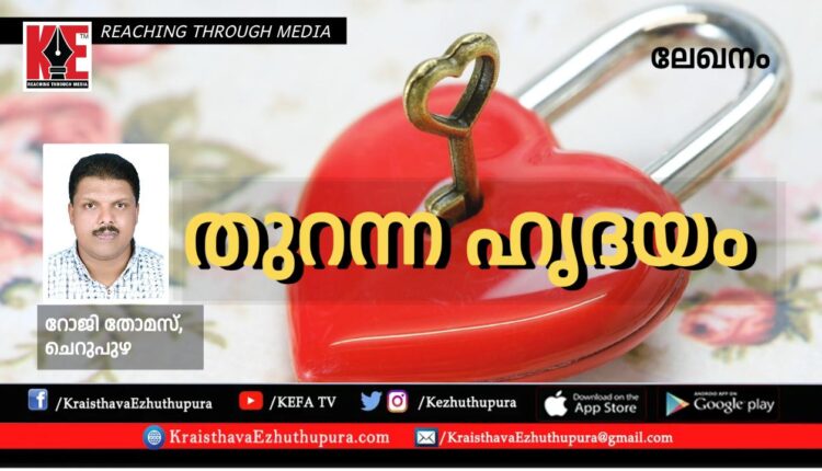 കർത്താവിനായി ഹൃദയം തുറക്കുന്നതിന്റെ പ്രാധാന്യം വിസ്മരിക്കാനാവില്ല. ഒന്നാമതായി, അത് രക്ഷയുടെ കവാടമാണ്. “യേശുവിനെ കർത്താവു എന്നു വായികൊണ്ടു ഏറ്റുപറകയും ദൈവം അവനെ മരിച്ചവരിൽ നിന്നു ഉയിർത്തെഴുന്നേല്പിച്ചു എന്നു ഹൃദയംകൊണ്ടു വിശ്വസിക്കയും ചെയ്താൽ നീ രക്ഷിക്കപ്പെടും. ഹൃദയം കൊണ്ടു നീതിക്കായി വിശ്വസിക്കയും വായികൊണ്ടു രക്ഷെക്കായി ഏറ്റുപറകയും ചെയ്യുന്നു. “അവനിൽ വിശ്വസിക്കുന്നവൻ ഒരുത്തനും ലജ്ജിച്ചു പോകയില്ല’ എന്നു തിരുവെഴുത്തിൽ അരുളിച്ചെയ്യുന്നുവല്ലോ” (റോമർ 10:9-11). വിശ്വാസം കേവലം ബൗദ്ധിക കരാർ മാത്രമല്ല, ഹൃദയംഗമമായ വിശ്വസ്തതയും ഏറ്റെടുപ്പുമാണ്.