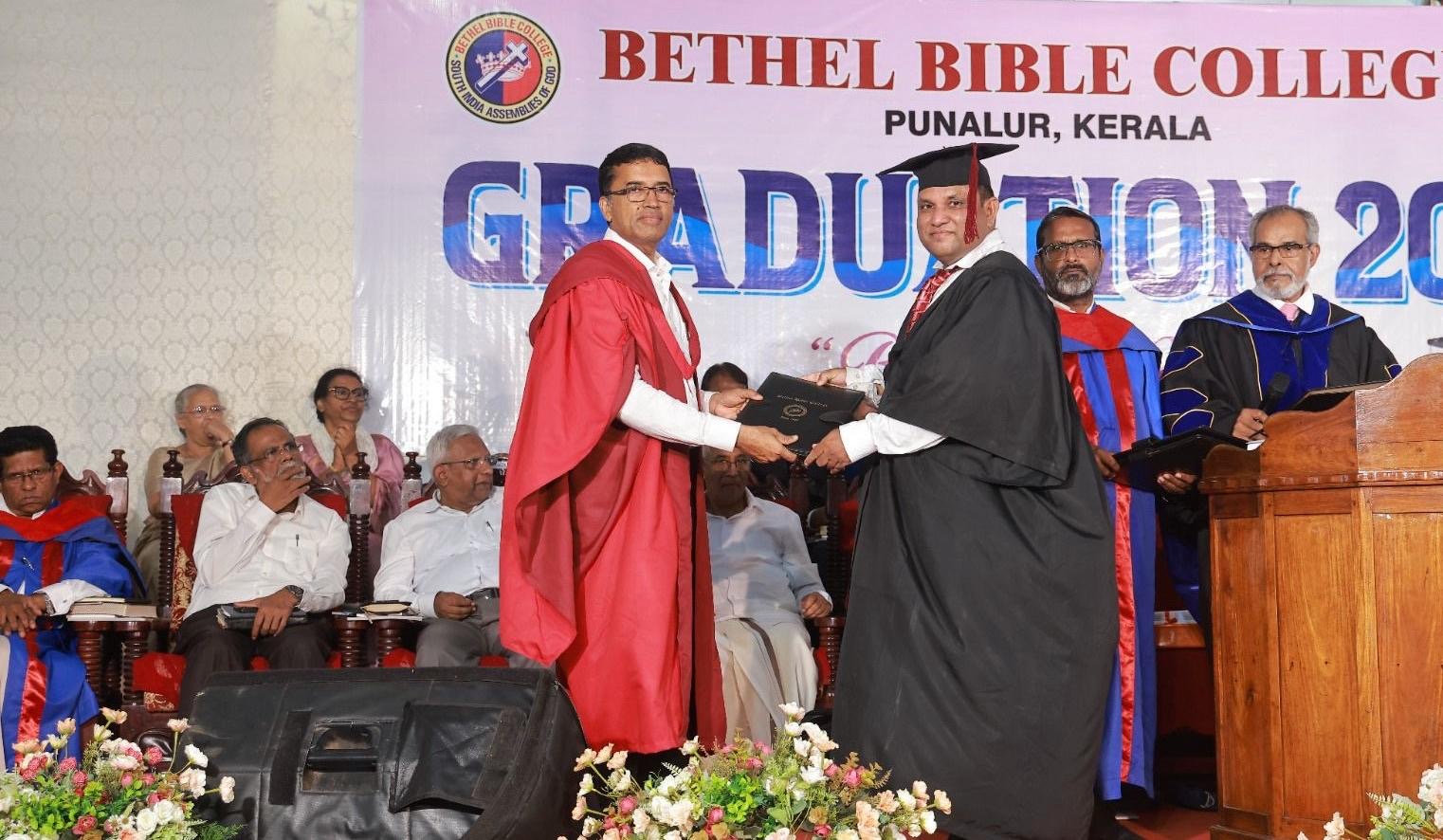 ബഥേൽ ബൈബിൾ കോളേജിന്റെ ബോർഡ് ചെയർമാൻ റവ. ഡോ. റ്റി. ജെ. സാമുവൽ നിയമന പ്രാർത്ഥനയും അനുമോദന പ്രഭാഷണവും നടത്തി. കോളേജ് പ്രസിഡന്റ് റവ. ഡോ. ഐസക് വി. ചെറിയാൻ, പ്രിൻസിപ്പൽ റവ. ഡോ. ജെയിംസ് ജോർജ് എന്നിവർ ബിരുദദാന ശുശ്രൂഷ നിർവഹിച്ചു. ഫുള്ളർ തിയോളജിക്കൽ സെമിനാരിയിലെ അസോസിയേറ്റ് പ്രൊഫസർ റവ. ഡോ. ജോസ് എബ്രഹാം മുഖ്യപ്രഭാഷണം നടത്തി. ബിബിസി ബോർഡ് അംഗങ്ങളായ