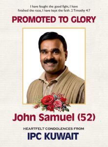 ജോൺ സാമൂവേൽ (52) കുവൈറ്റിൽ ചികിത്സയിലിരിക്കെ കർത്തൃസന്നിധിയിൽ ചേർക്കപ്പെട്ടു