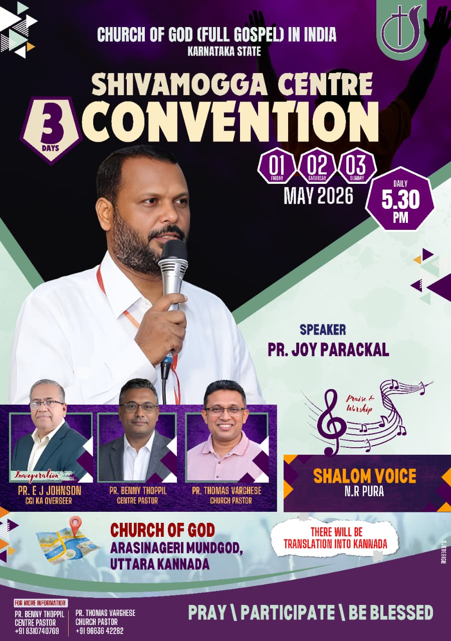 ചർച്ച് ഓഫ് ഗോഡ് ഷിമോഗ സെന്റർ കൺവൻഷൻ മെയ് 1 മുതൽ